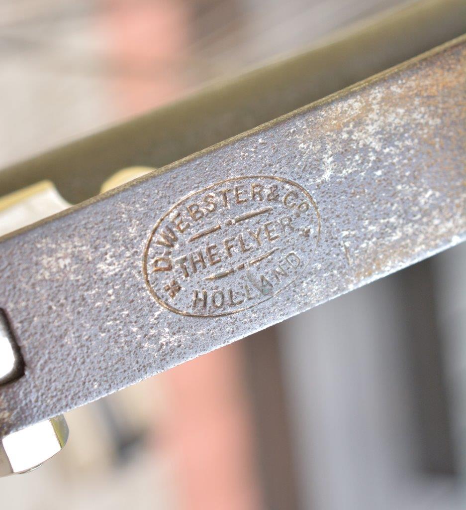 On the pictures you see what is supposed to be the last remaing bicycle carrying the name of D.Webster. I guess the parts were imported from England and assembled in Haarlem. I'm quite sure Webster didn't have a real factory. The model name 'The Flyer' seems like some fantasy name.
