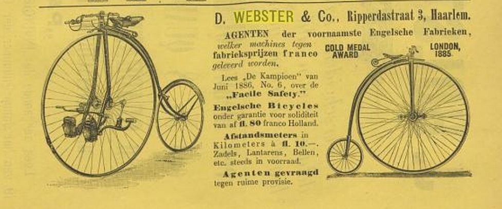 Webster was of British origin and he was selling ordinaries, sometimes with his own name engraved in the spring. Just because he sold bicycles, he was forced to leave the board of the ANWB after a few years.